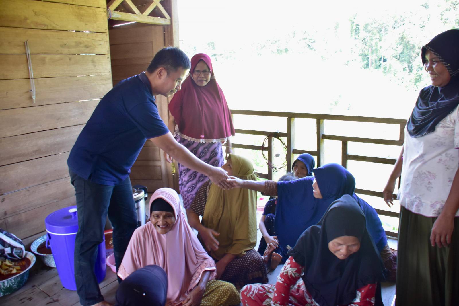 Saat melakukan penyaluran Bantuan Terdampak Banjir di Desa Kebun tinggi, salah satu kepala Desa menghampiri Pj Sekda Kampar untuk dapat Berkunjung di Desanya yaitu desa Tanjung Permai.