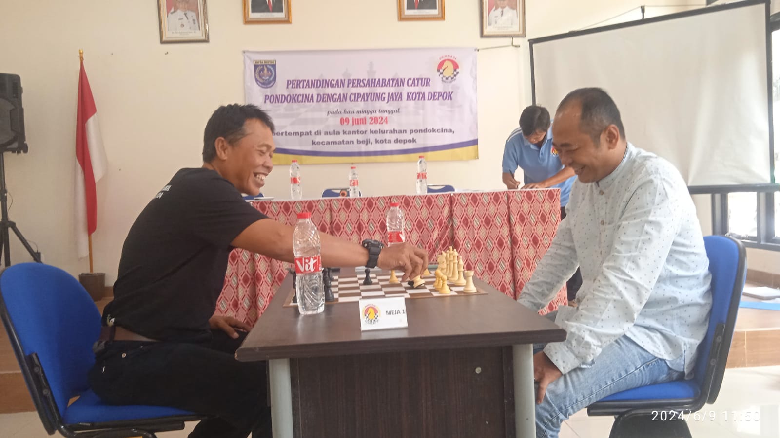 DEPOK ][ Heboh!, Lurah Cipayung Jaya menyerang Kantor Kelurahan Pondok Cina tak dapat di hindarkan dan pada ahirnya Lurah Cipayung dengan warga nya mendesak masuk ke kantor kelurahan, dengan tujuan bertanding cabang olahraga catur, yang di gagas oleh Nurman Hakim Lurah Pondok Cina, H Munir HM ( LPM ) Lilik Susanto selaku Sekel Poncin dan Iwan Baer sebagai Tokoh Masyarakat dan dihadirkan Imransyah, juri dari Percasi Kota Depok Minggu, 9/6/2024.