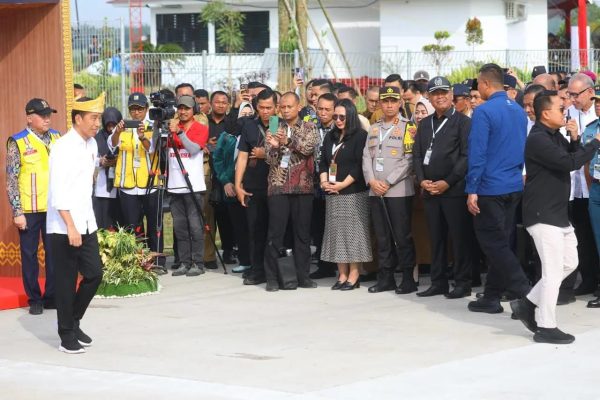 Peresmian 2 ruas Jalan Tol Trans Sumatera (JTTS) tersebut dilaksanakan di Gerbang Tol Lima Puluh Jalan Tol Indrapura-Kisaran, Rabu (7/2/2024). Presiden Republik Indonesia tiba di Sumut dari Bandara Kualanamu, Kabupaten Deli Serdang, Selasa, (6/2/2024).